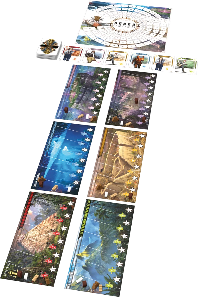À chaque tour, recrutez un explorateur ou lancez une expédition en assemblant vos cartes par couleur ou par métier. Choisissez bien votre chef d’équipe : il définit le site de l’expédition et offre une capacité spéciale !