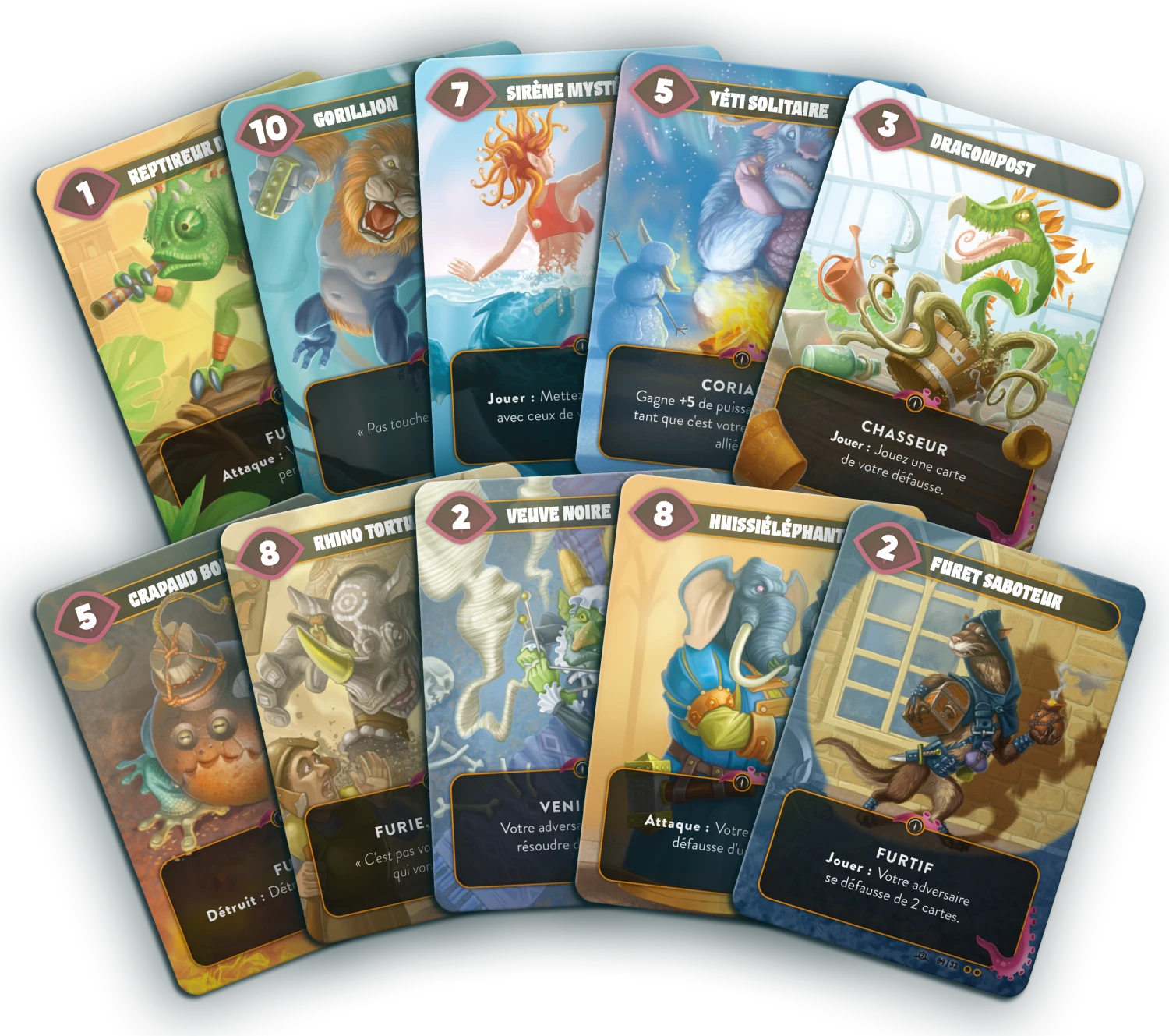 • Contenu : 48 cartes Créature, 2 compteurs Santé, 4 cartes Mindbug et 1 livret de règles.