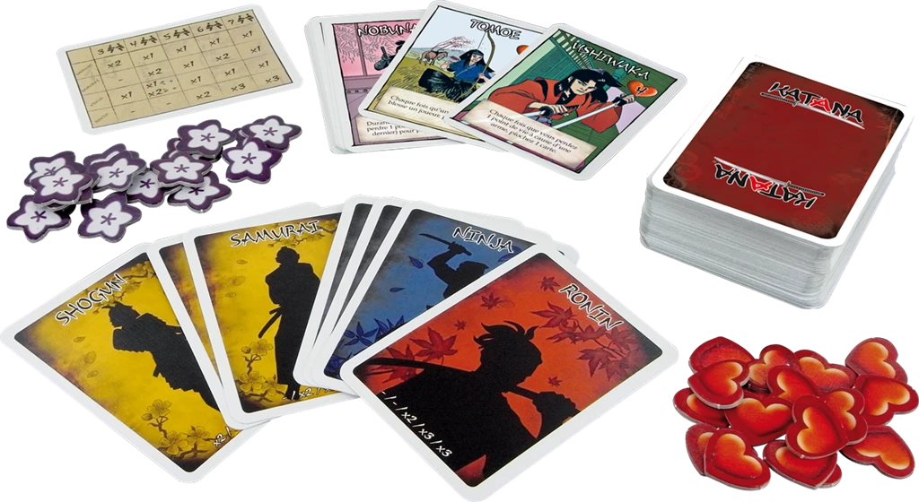 - 7 cartes de rôles (1 shogun, 2 samouraïs, 3 ninjas, 1 ronin),