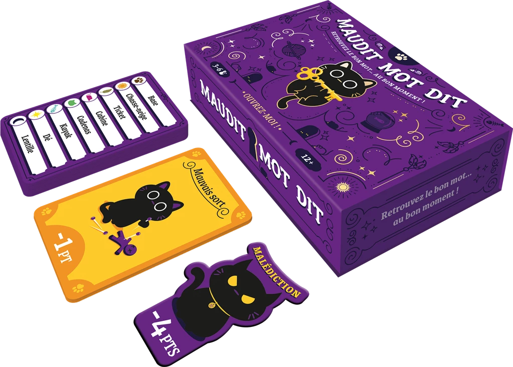 Maudit Mot Dit est un jeu dans lequel vous allez devoir faire deviner un mot en un nombre d’indices imposĂ© ! Mais attention Ă ce qu’il ne soit pas devinĂ© trop vite, ou pas devinĂ© du tout ! Un jeu très malin dans une magnifique petite boite.