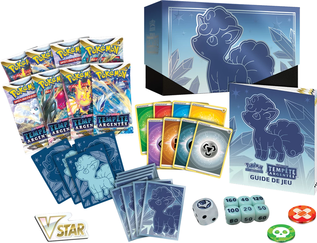 Le Coffret Dresseur d’élite Épée et Bouclier Silver Tempest du JCC Pokémon contient :