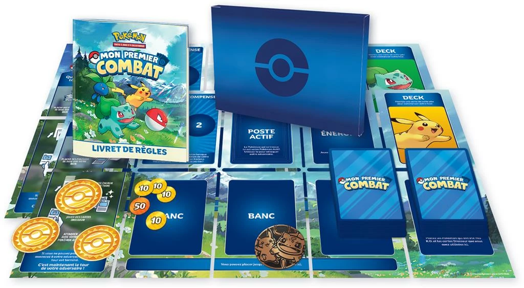 Mon premier combat » permet aux nouveaux Dresseurs et aux nouvelles Dresseuses Pokémon comme vous de commencer leur aventure. Dans cette introduction au Jeu de Cartes à Collectionner Pokémon, vous affronterez votre adversaire dans un combat Pokémon. Vous attaquerez à tour de rôle pour essayer de mettre K.O. les Pokémon de l’autre ! La première personne qui arrive à mettre K.O. 3 Pokémon de l’adversaire et à récupérer 3 jetons Récompense remporte la partie ! Commençons !