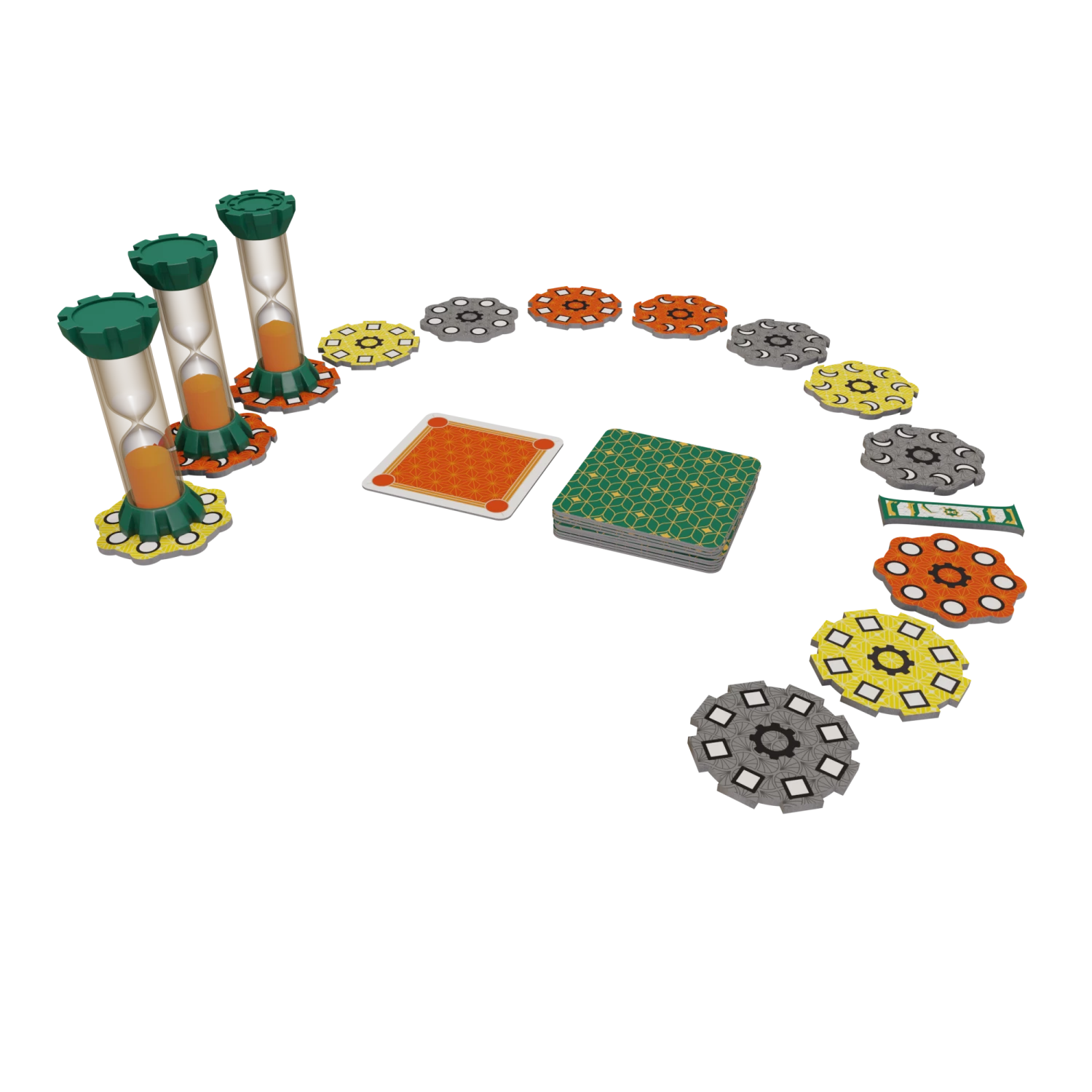 À tour de rôle, les joueurs jouent leurs cartes pour retourner et faire avancer un ou plusieurs sabliers. Le but est de faire en sorte qu’aucun d’entre eux ne s’épuise avant d’avoir désactivé les Sables Mouvants. Les sabliers sont posés sur des tuiles Engrenages, chacune se distinguant par une combinaison unique de forme et de couleur. Quant aux cartes, chacune représente une seule forme ou une seule couleur parmi toutes celles disponibles. Lorsqu’une carte est jouée, tous les sabliers situés sur les tuiles correspondantes (de même forme ou de même couleur) sont automatiquement retournés et avancés vers la tuile suivante.